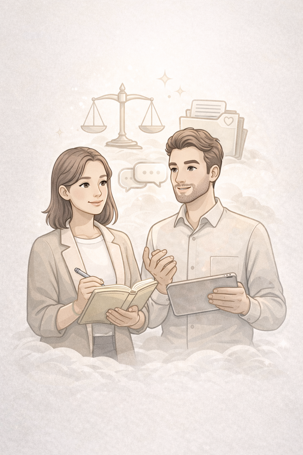 We don’t tell you what to decide or how your relationship should look. Instead, we provide frameworks that help you understand patterns, navigate difficult conversations, and rebuild emotional balance with intention and respect.